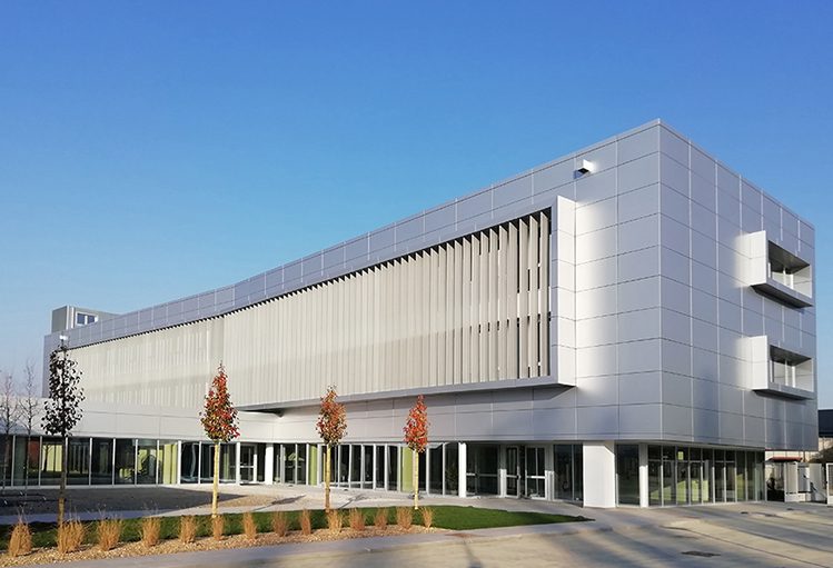 To culminate an amazingly successful 25-year long business activity, a new futuristic headquarter is built, imprinted on the concepts of sustainability, innovation, and modernity, designed to host the activity of a perpetually growing company.